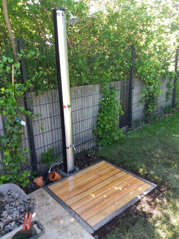Duschen als willkommene Abkühlungsmöglichkeit im Garten.