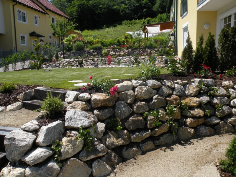 Somit ergibt sich eine gestalterisch anspruchsvolle Alternative zu gemauerten Stützmauern.